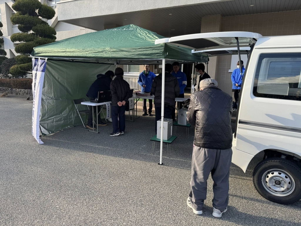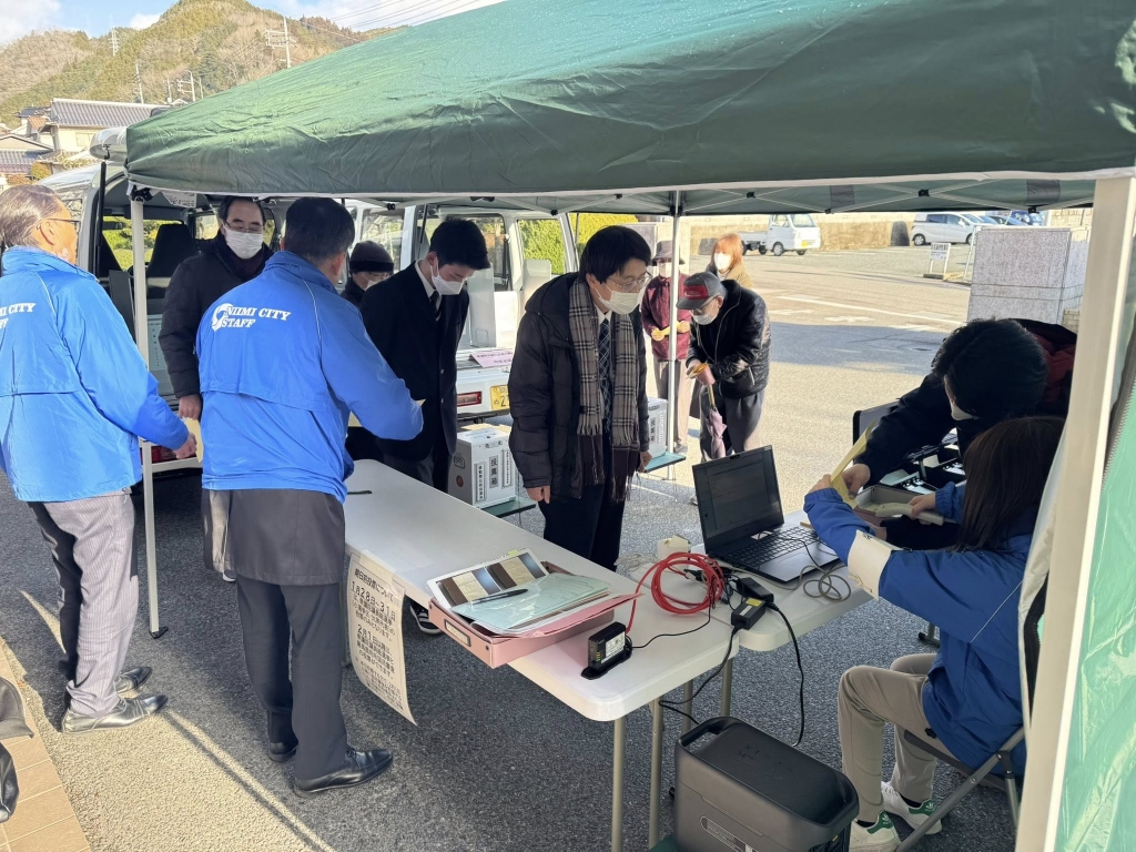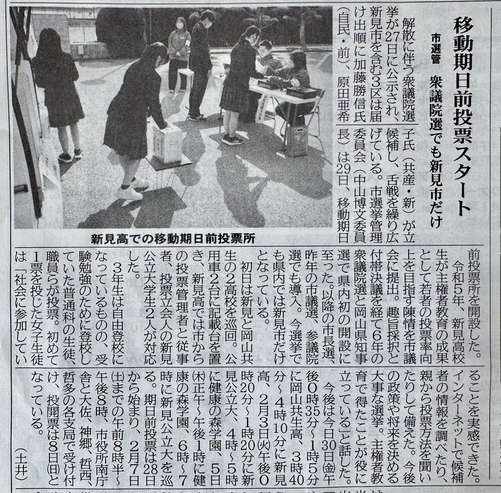新見高校に設置された「移動期日前投票所」を視察しました。高校生や一般の方々が投票に来られておられました。移動手段の弱い郡部にも拡大できたら、皆さん助かると思いました。
