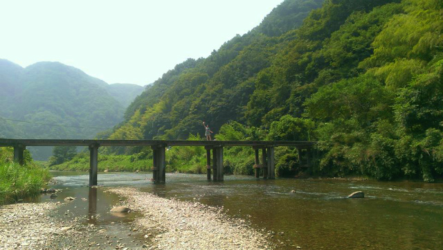 家族で、川に遊ぶ。