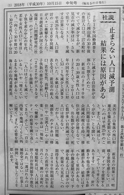 新見の地域紙「備北新聞」です。危機感を共有したいものだ。