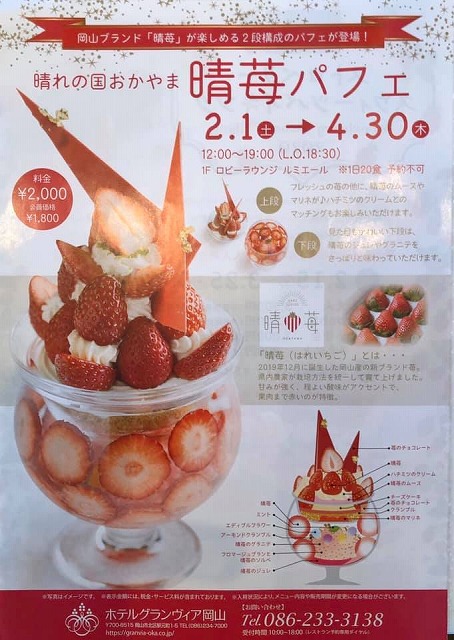 18時30分から、「ホテルグランヴィア岡山」で開催された『第69回フルーツ王国おかやまフルーツパフェ研究会』に出席しました。「晴苺」とお聞きして、一も二もなく出席しました。「晴苺」、よろしくお願いします。ありがとうございました。