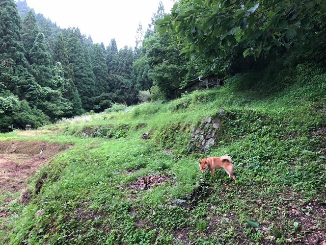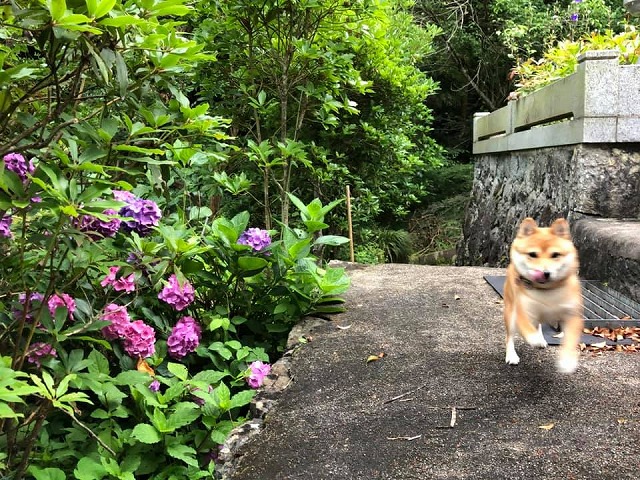 「朝のお散歩」、長袖シャツを着ています。本日もよろしくお願いします。頑張りましょう。
