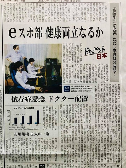 日本経済新聞を開いて驚いた。全国社会面で、岡山共生高校のeスポーツ部の取組みがとり上げられている。凄いなぁ。