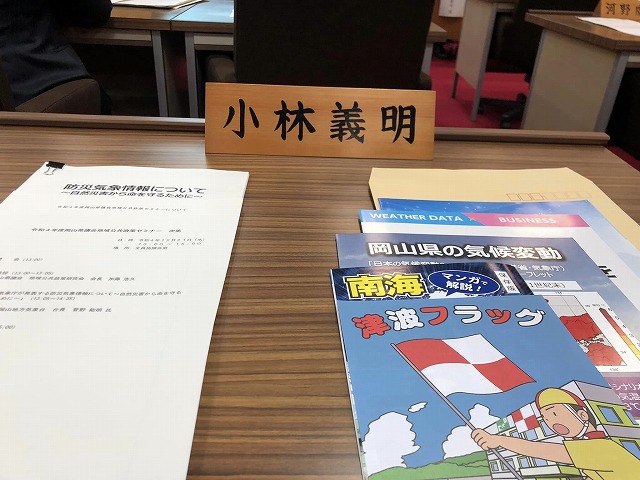 昼休憩時間に「政友会」。13時から開催された「令和4年度岡山県議会地域公共政策セミナー」に出席。講師は、岡山地方気象台台長の菅野能明氏。テーマは「気象庁が発表する防災気象情報について~自然災害から命を守るために~」でした。