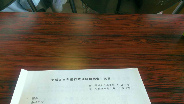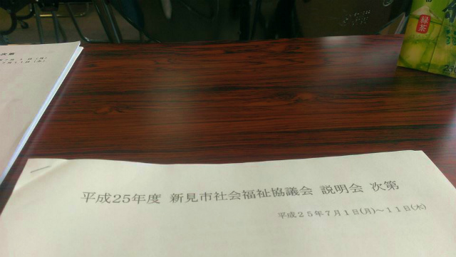 午前10時から、新見市の『平成25年度行政地区総代会』に出席しました。続いて、『平成25年度新見市社会福祉協議会説明会』でした。