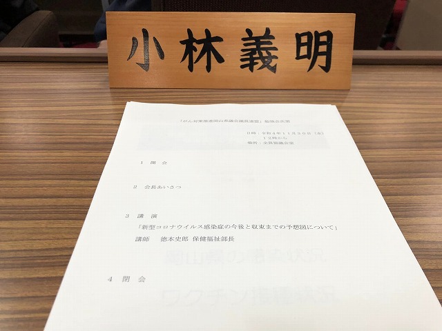 12時10分から、「がん対策推進岡山県議会議員連盟(内山登会長)」の勉強会。講師は、岡山県保健福祉部長徳本史郎氏。テーマは「新型コロナウイルス感染症の今後と収束までの予想図について」でした。