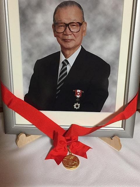 故原田三代治先生と優勝メダル。