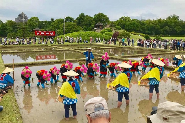 今日、「岡山後楽園」で行われた『お田植え祭』、新見の皆様が実演されました。残念ながら参加できません出来ませんでした。フェイスブックお友達の写真を拝借してのご紹介です。