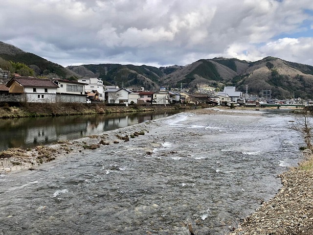 新見市街地「江道橋」下の高梁川、浚渫工事が完了しています。ありがとうございました。