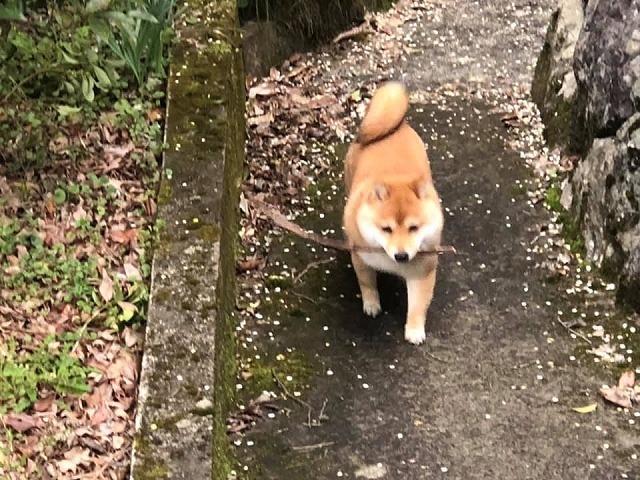 近ごろは、いろいろくわえて持ってきてくれる「朝のお散歩」。自分だけの喜びから、もっと大きな喜びに気付いたようだ。喜んでもらうことを喜ぶ。情緒が育つ小林ふくであります。