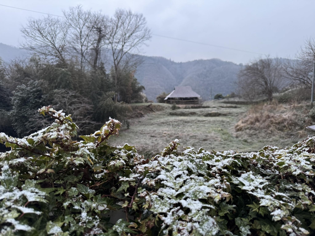 梅の花もブルブル。雪が降っています。本日もよろしくお願いします。頑張りましょう。これから岡山市へ向かいます。