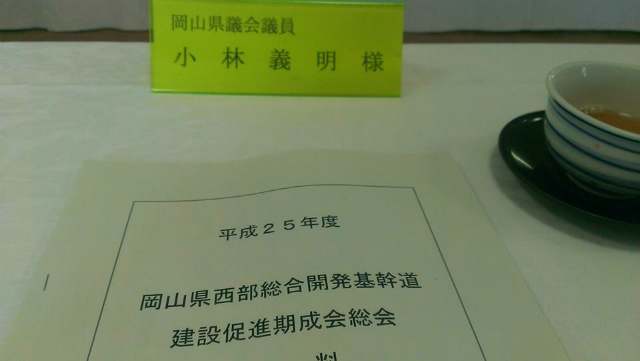 10時30分から、「高梁国際ホテル」で開催された『平成25年度岡山県西部総合開発基幹道建設促進期成会総会』に出席しました。