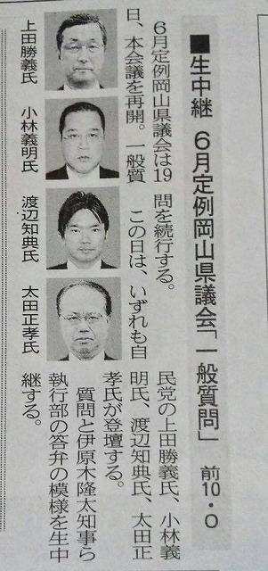 今日は「県議会月定例本会議一般質問」です。新見から傍聴に来ていただきます皆様、ありがとうございます。よろしくお願いします。