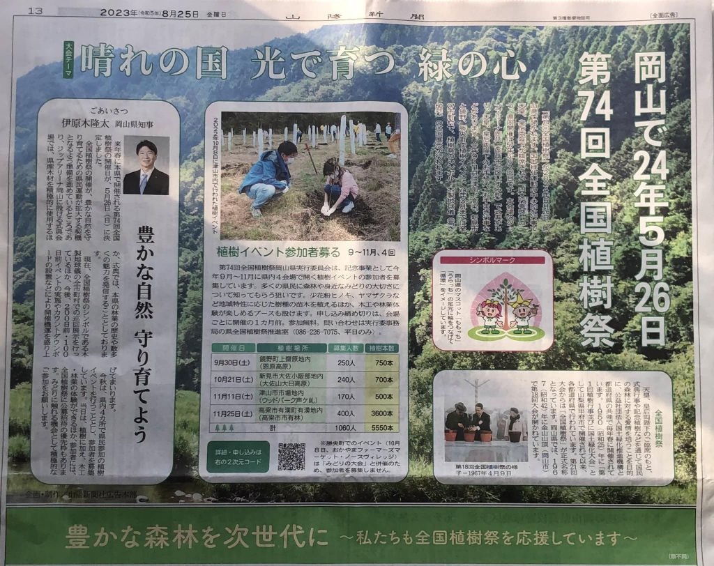 おや、日がさしている。いよいよ来年だ。記事は山陽新聞広報紙面。