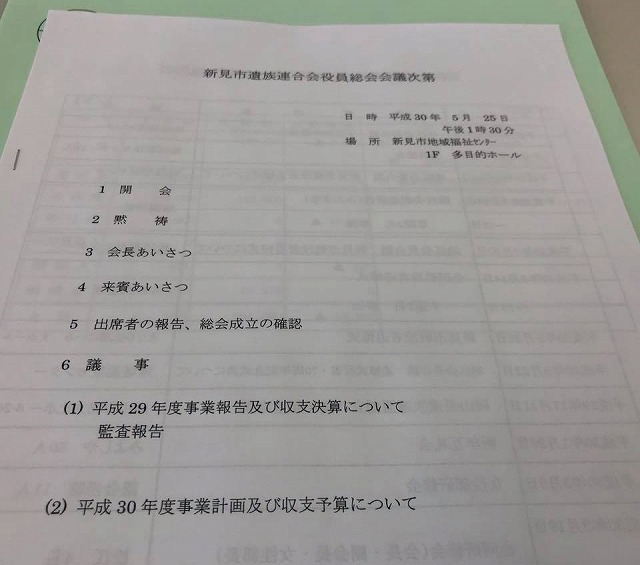 13時30分から、「新見市地域福祉センター」で開催された『新見市遺族連合会役員総会』に出席しました。一言ご挨拶の機会を頂きました。終戦後73年が経ち、子どもや孫の時代となりました。遺族会の皆様と共に、あの悲惨な戦争体験が風化しないよう語り継いでまいりたいと思います。