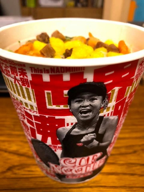 夜食に「大坂なおみカップヌードル」を食べてます。この時間に食べると、また格別。