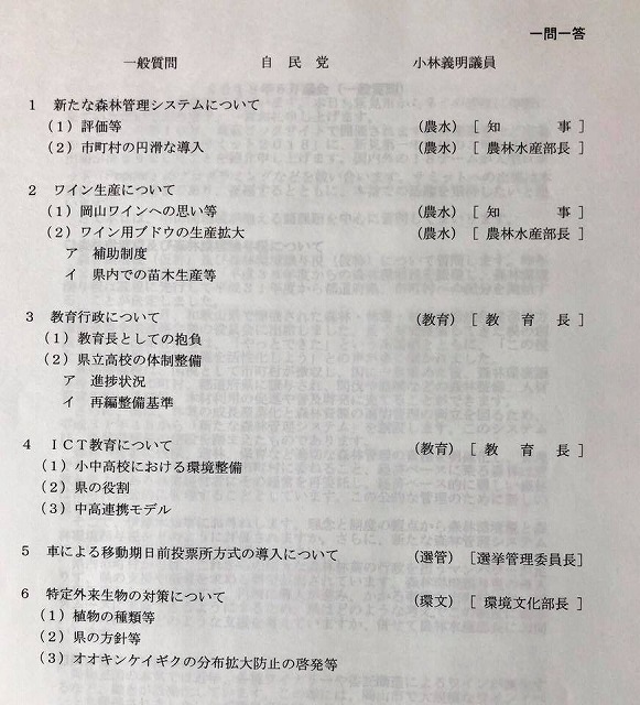 6月19日㈫の10時40分前後から、「岡山県議会6月定例会」の『一般質問(一問一答)』で登壇させて頂きます。傍聴席に余裕がございますので、お出かけ下さい。