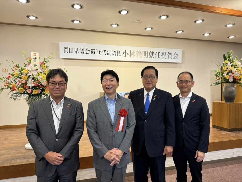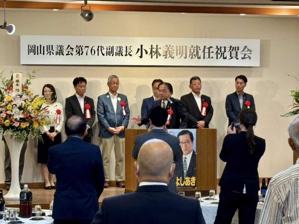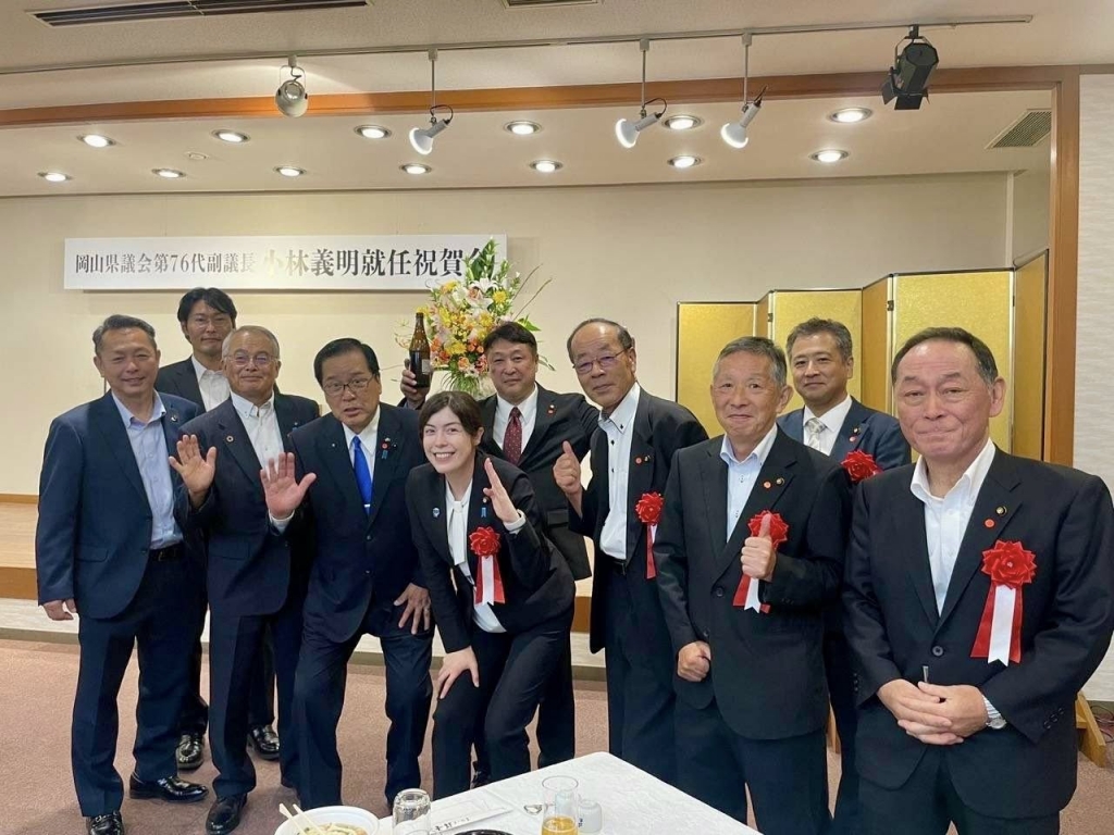 「岡山県議会第76代副議長就任祝賀会」を開催して頂きました。感謝するばかりです。ご挨拶を頂きました伊原木知事、遠藤議長、加藤大臣、小野田参議院議員、小林参議院議員、内山幹事長はじめ県議会議員の皆様、石田市長、藤沢議長はじめ新見市議会議員の皆様、田中新見商工会議所会頭、ありがとうございました。川上後援会長、生原副会長、塚本副会長、ありがとうございました。万歳三唱、花束贈呈、受付の小林女性部会長はじめ女性部の皆様、ありがとうございました。司会の池田青年部副部長、ありがとうございました。ご出席頂きました皆様、ありがとうございました。