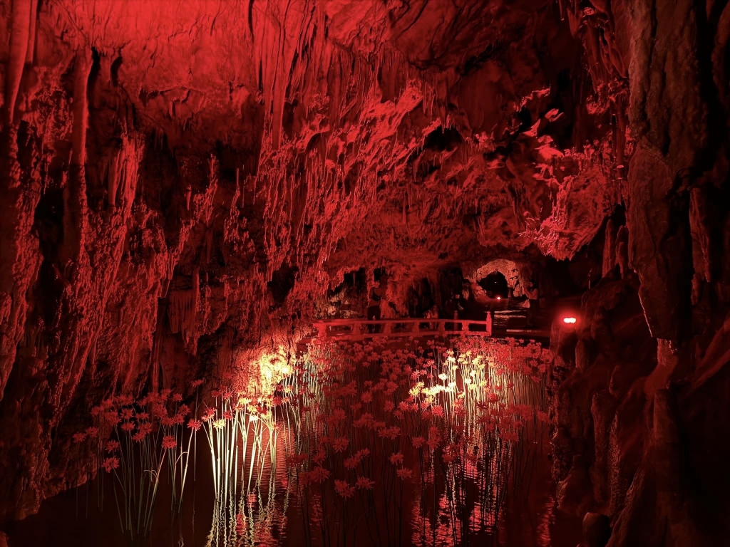 「森の芸術祭晴れの国・岡山」の「内覧ツアー」2日目。津山市から新見市へ移動して、「満奇洞」会場。多くの県会議員の皆様もご参加して下さいました。ありがとうございました。
