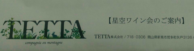 『秋の星空とTETTAワインの会』10月28日㈪17時スタート。
