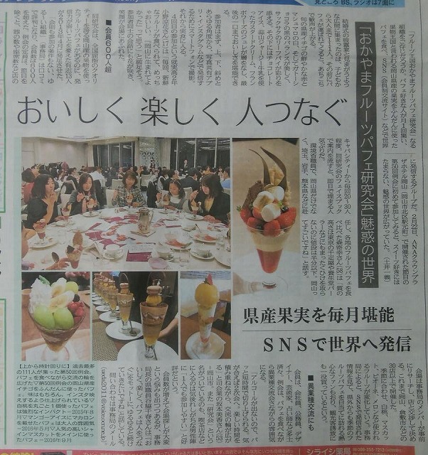 「おかやまフルーツパフェ研究会」の記事が、新見では手に入らない山陽新聞夕刊に掲載されている。情報ありがとうございます。