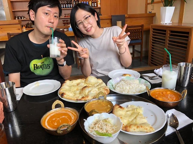 お盆で帰省した子供2人と妻とランチタイム。夏のカレーも結構でした。