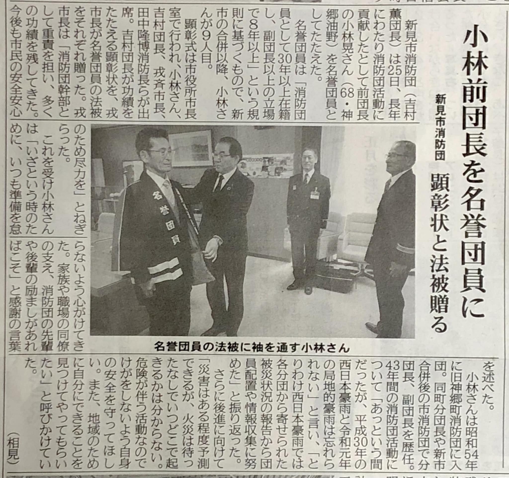 おめでとうございます。同級生の活躍は、格別だ。嬉しく思う。記事は、新見の地域紙「備北民報」です。