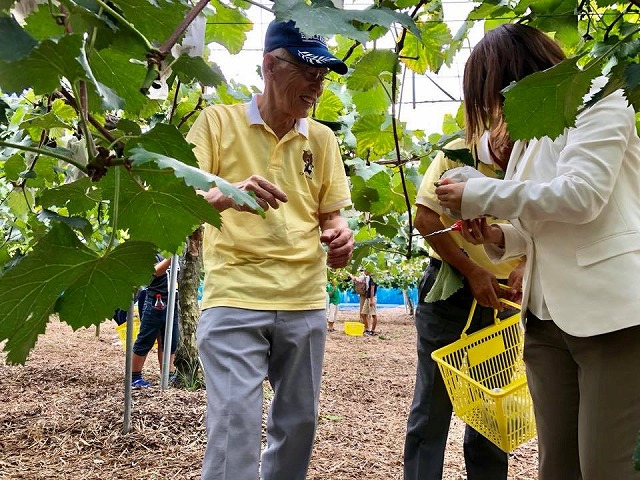 再び、「ピオーネ交流館」へ。ぶどう狩り体験をして頂きました。ありがとうございました。