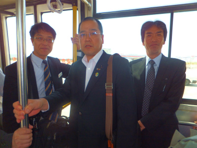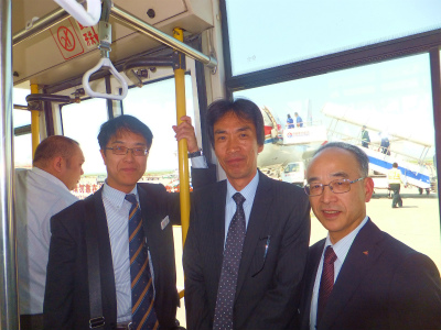 空港内バス移動、松井さん、後藤校長、角川常務理事と。