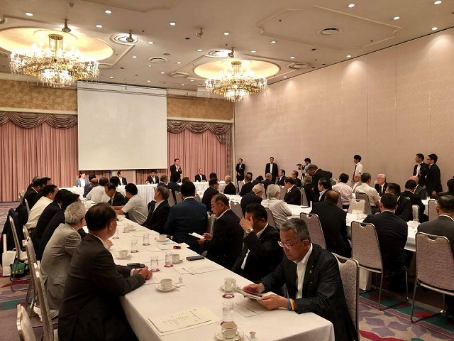 13時30分から岡山市内のホテルで開催された、『安倍晋三総裁の総裁選挙再選を応援する岡山県有志の会』に出席しました。加藤勝信選対本部長を先頭に、一致団結して頑張ることを決議しました。