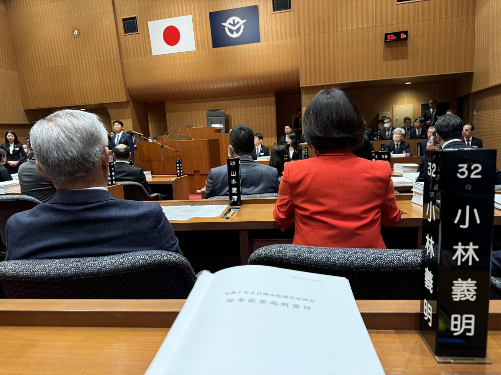 9時から、協議2件。10時から「2月定例岡山県議会」開会。令和7年度当初予算案等132議案を一括上程。知事提案理由説明。会期は3月19日まで。