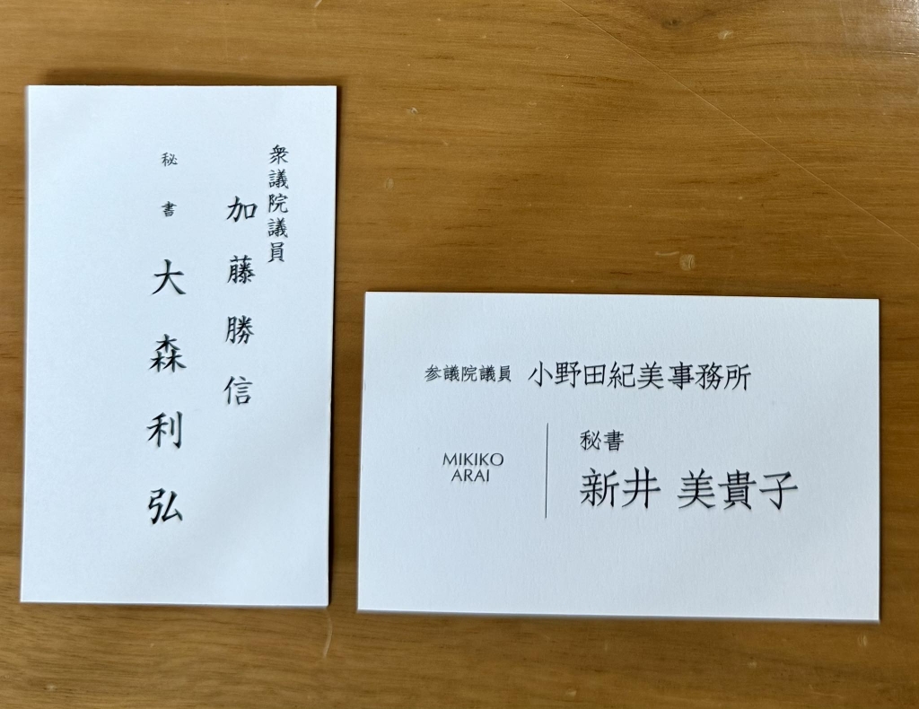 新見の事務所から、小野田紀美大臣の秘書様と加藤勝信衆議院議員の秘書様がご挨拶に来られたと連絡がありました。不在で申し訳ありません。ありがとうございました。