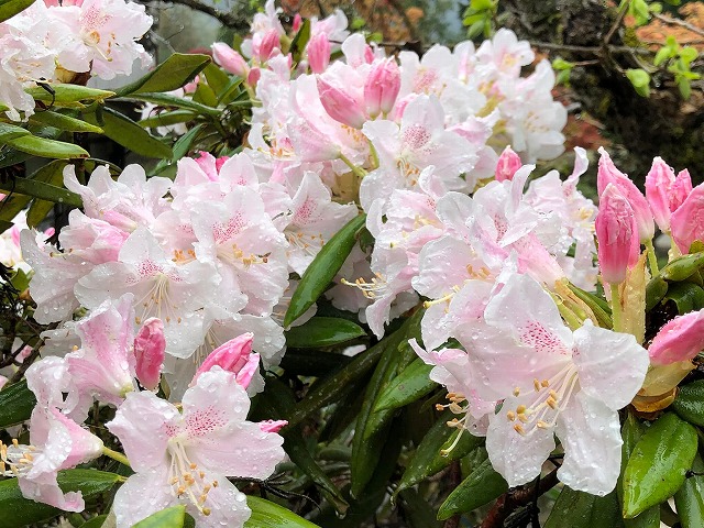 雨の朝のお散歩となりました。傘さして、長靴はいて、今が盛りのシャクナゲを愛でながら、落葉や小枝で詰まった山水の取り入れ口の掃除です。散歩同様、これも欠かせない。余談ですが、税金振込用紙も欠かさずやってくる。本日もよろしくお願いします。頑張りましょう。