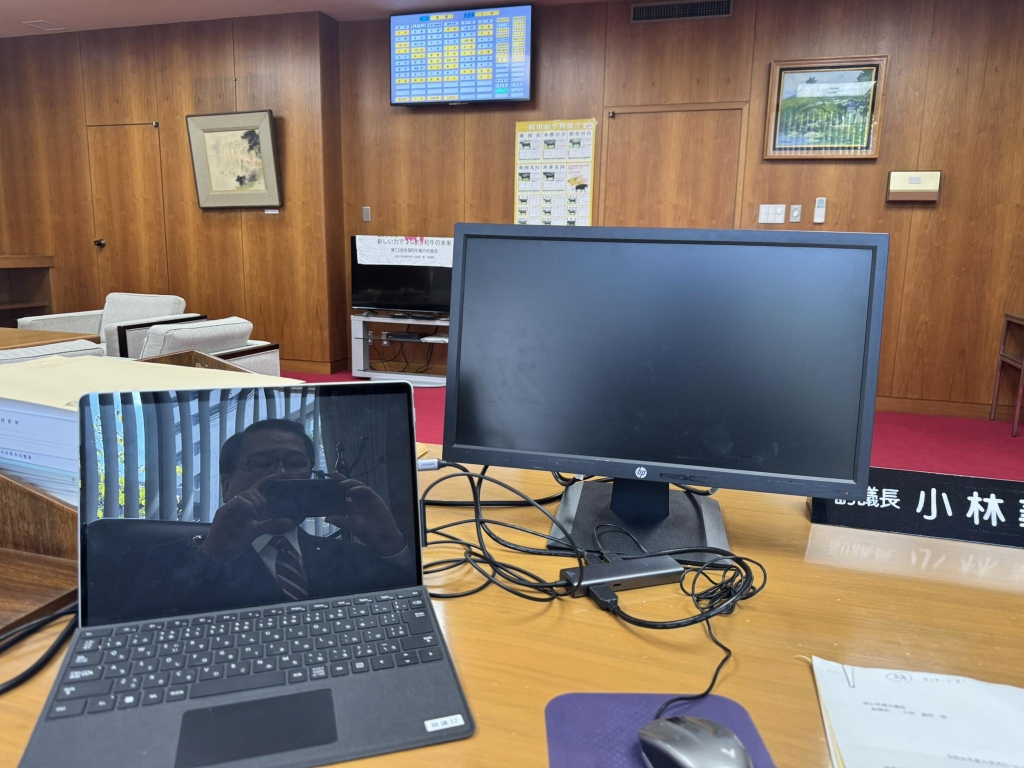 午前中、学校法人用務。それから、政務事務所で異動のご挨拶。ありがとうございました。そして先ほど、県議会棟に入りました。「秘書さんが撮った写真をつかようるんじゃろう」のご指摘を頂いたので、「そうじゃぁねえよ」と策を弄してみました(笑)
