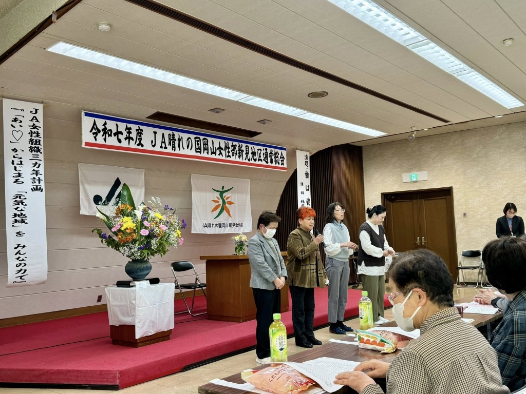 今日の「JA晴れの国岡山女性部新見地区通常総会」の様子です。役員改選がありました。旧役員の皆様、お疲れさまでした。ありがとうございました。新役員の皆様、どうぞよろしくお願いします。
