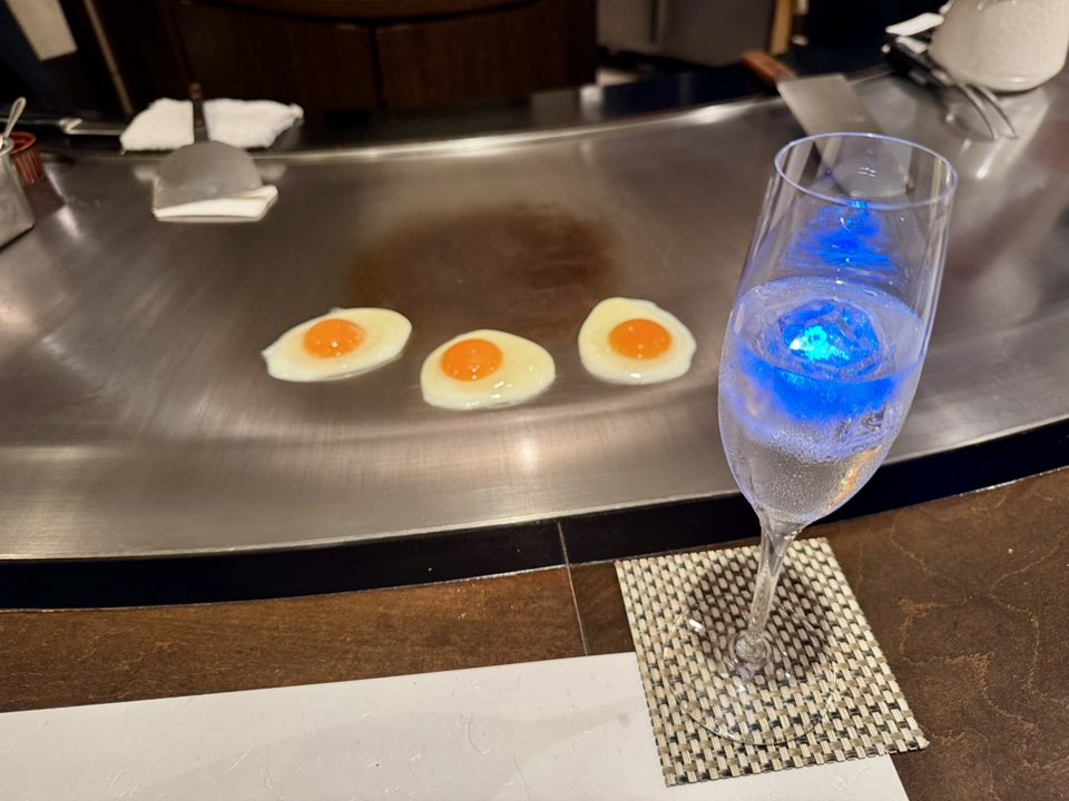 オシャレな目玉焼きと炭酸水。慰労食事会です。いつもありがとうございます。
