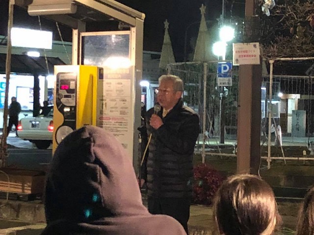 途中退席させて頂いて、「新見駅前広場」へ移動。『新見駅前イルミネーション点灯式』に出席しました。5年ぶりの新見駅前イルミネーションの復活です。文字通り灯の消えた様になっていた新見駅前が明るくなりました。新見駅前を明るく!新見を明るく!おめでとうございますと、一言ご挨拶をさせて頂きました。
