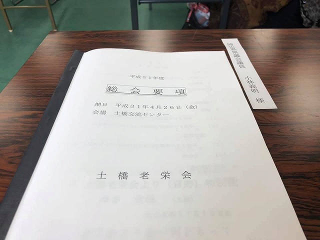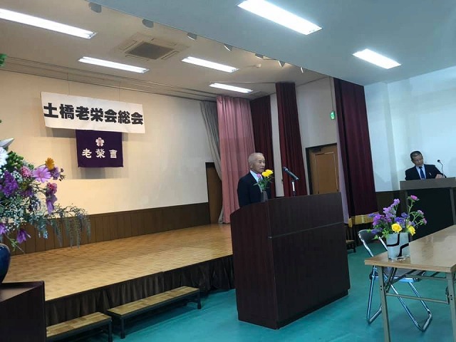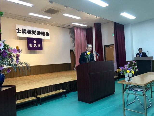 10時から、「土橋交流センター」で開催された『平成31年度土橋老栄会総会』に出席しました。ご盛会おめでとうございます。この度、長寿表彰をお受けになられました皆様、おめでとうございました。一言ご挨拶の機会を頂きました。ありがとうございました。