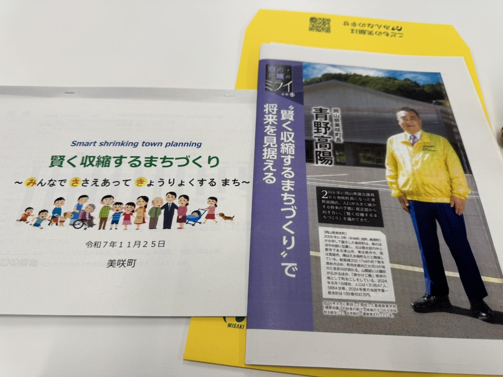 13時30分から、「美咲町役場本庁舎」を訪問して、美咲町が推し進める「賢く収縮するまちづくり」について、聞かせて頂きました。質問に立たせて頂きました。「賢く収縮するまちづくりの後の展望について」、青野町長の構想を尋ねました。ありがとうございました。