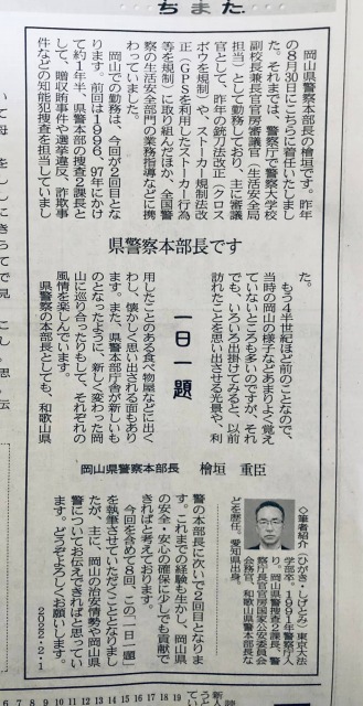 県議会棟に入りました。今朝の山陽新聞「ちまた」欄です。