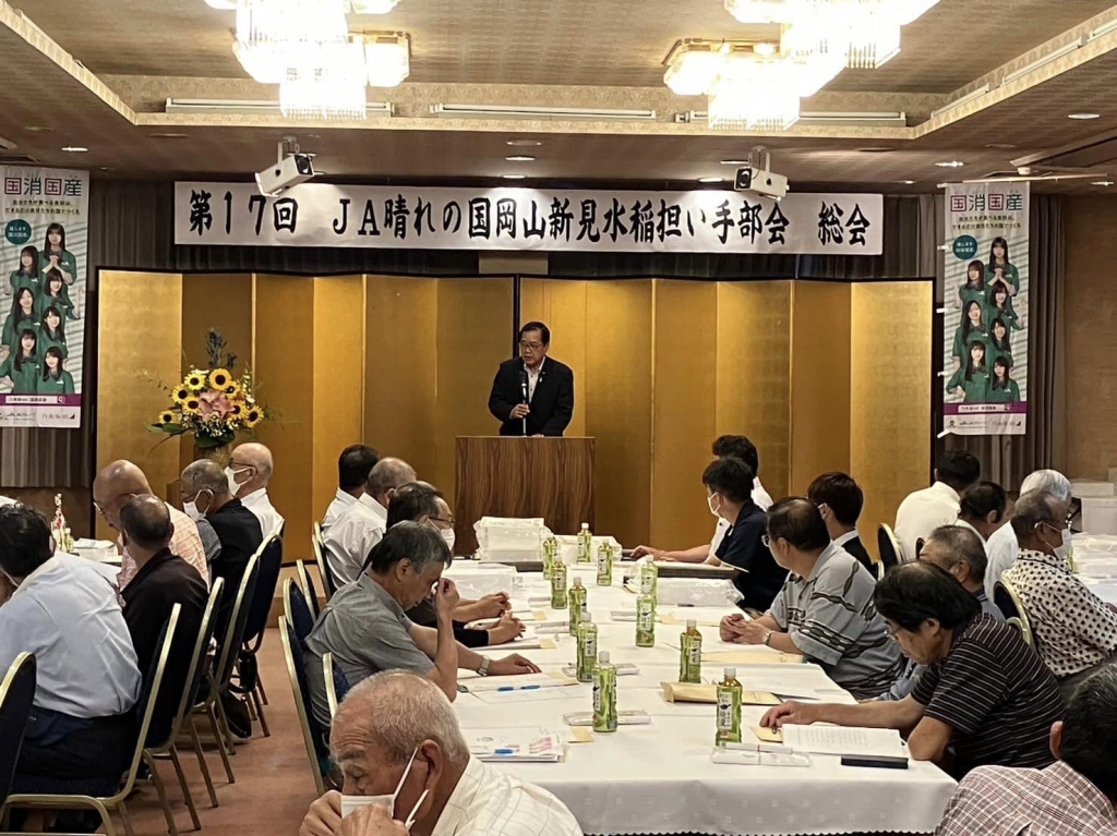 10時30分から、「Aコープ2階」で開催された「第17回JA晴れの国岡山新見水稲担い手部会総会」に出席しました。ご開催おめでとうございます。表彰状、感謝状をお受けになられました皆様、おめでとうございました。来賓挨拶の機会を頂き、ありがとうございました。