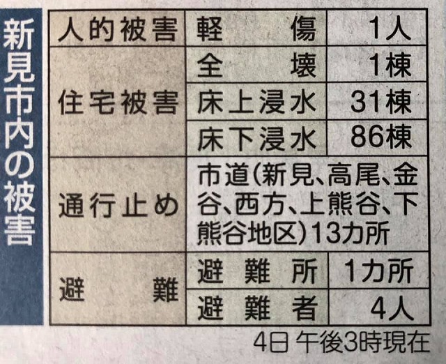 新聞が被害状況を分かりやすくまとめてくれている。「山陽新聞高梁・新見版」です。