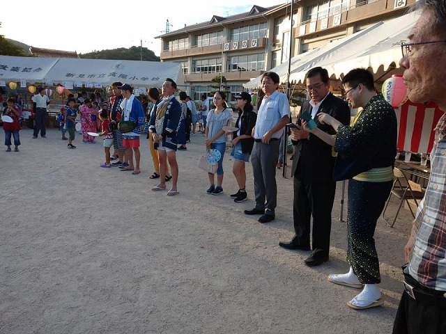 18時から、「高尾小学校グラウンド」で開催された『高尾若連祭』に出席しました。ご盛会おめでとうございます。加藤勝信代議士、新見へ入って頂いています。ありがとうございます。