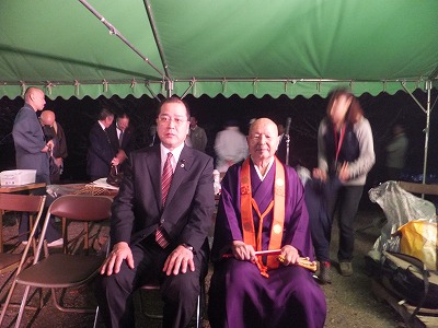 火種を投下する。(砂原長者様、中田教育長、橋本実行委員長、小林の