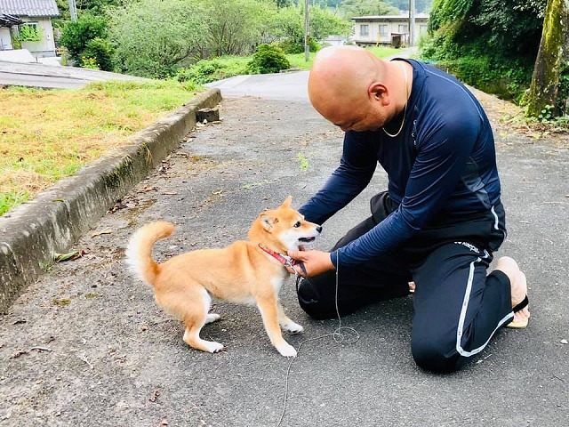 爽やかな朝となりましたが、ブトが来る来る。手で払いながらの朝のお散歩です。途中から、お隣のおっちゃんにバトンタッチ。ありがとうございます。本日もよろしくお願いします。頑張りましょう。