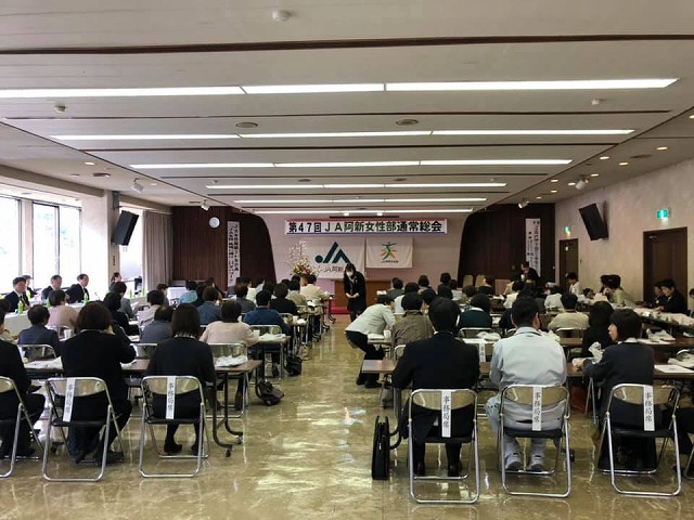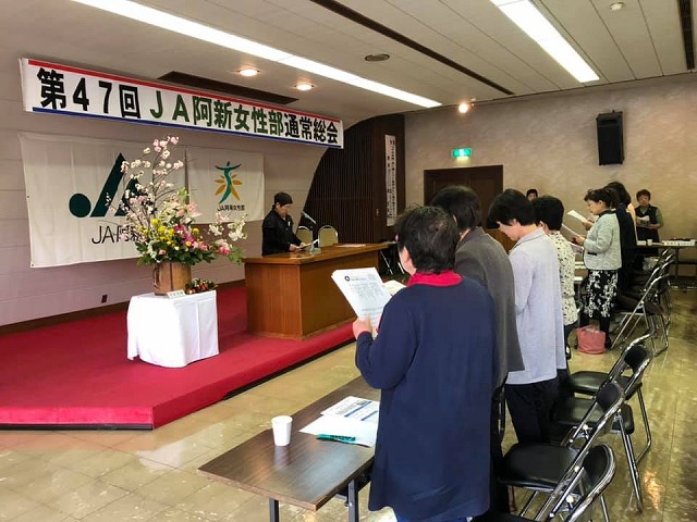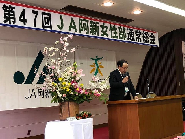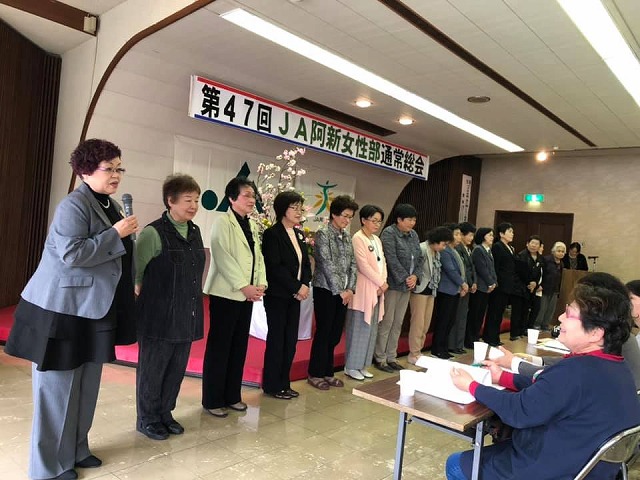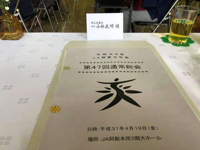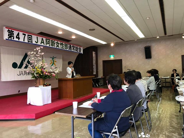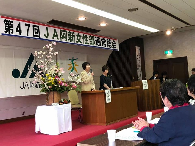 9時から、「JA阿新会館」で開催された『JA阿新女性部第47回通常総会』に出席しました。おめでとうございます。一言、ご挨拶を申し上げました。沢山の笑顔をありがとうございました。