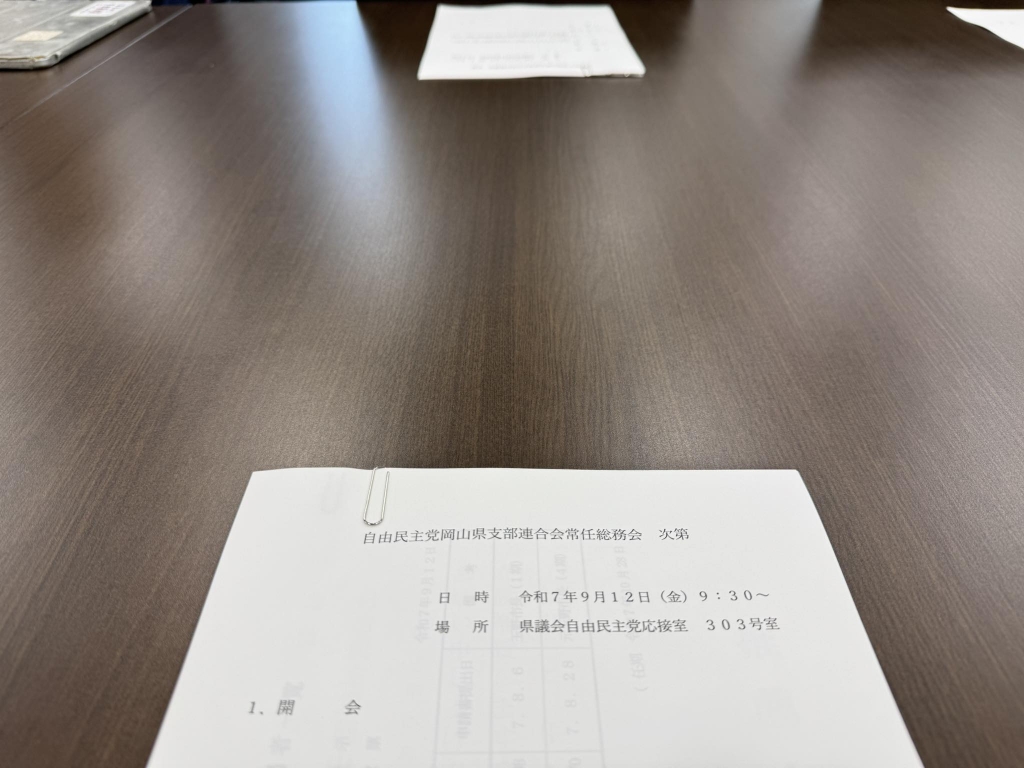 8時50分から、議長室で「議会運営レク」。9時30分から、「自民党岡山県支部連合会常任総務会」に出席しました。