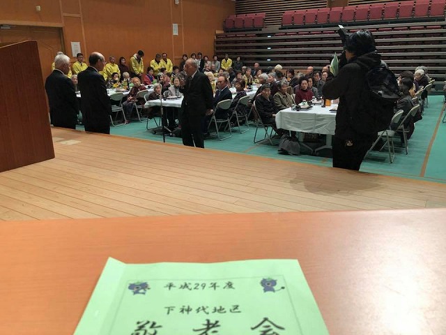 10時30分から「神郷生涯学習センターしゃくなげホール」で開催された『平成29年度下神代地区敬老会』に出席し、一言なご挨拶をさせて頂きました。ありがとうございました。2年に一度、下神代敬老会実行委員会の皆様のお力で開催される『下神代地区敬老会』、多くの敬老者の皆様がご出席でした。どうぞお元気にお過ごしください。