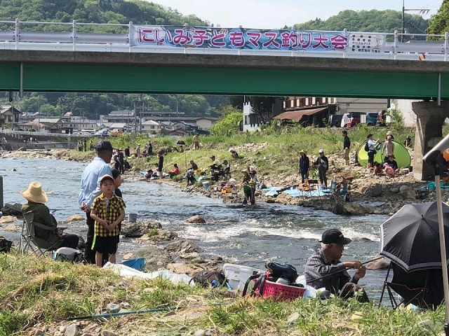 9時40分から、『第46回にいみ子どもマス釣り大会』の開会式に出席しました。ご盛会おめでとうございました。一言ご挨拶の機会を頂きました。ありがとうございました。
