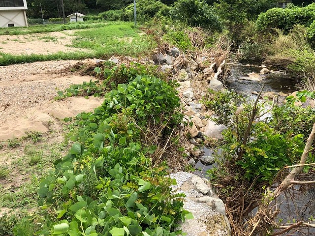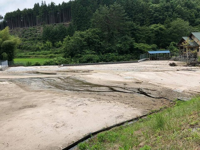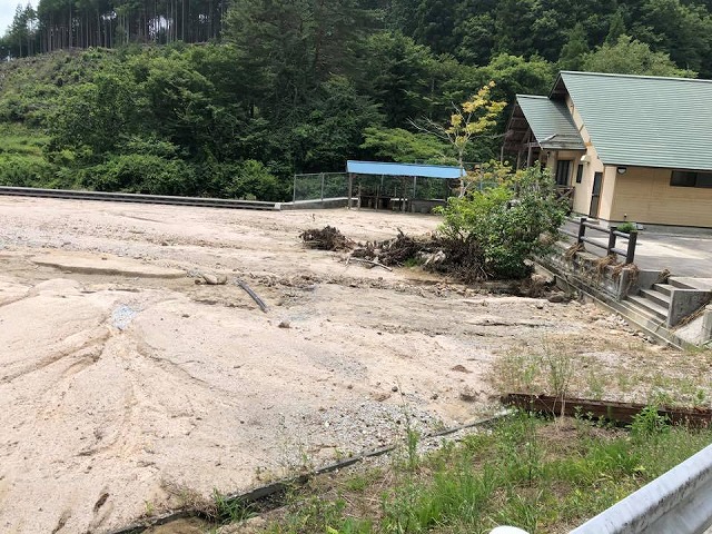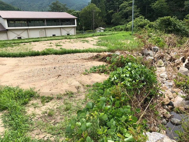 続いて、ご連絡を頂いた「三室地区」の視察に伺いました。初めに河川が氾濫して公共施設が床下浸水した箇所です。