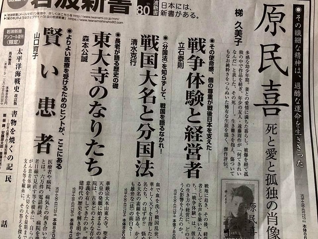 新聞の広告欄に原民喜の名前があった。今年も8月になるんだと思った。学生時代に馴染んだ名前だ、原民喜、「夏の花」。